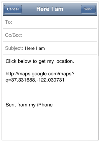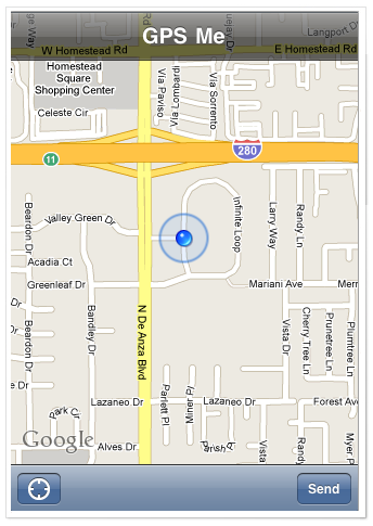 このアプリを使えば、自分の現在位置を友達にメールで送ることができます。 受け取り側はGoogle Mapを使って、あなたの位置を知ることができます。